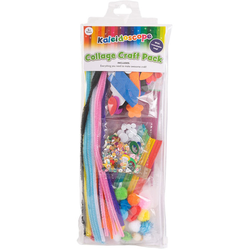• includes 24 x assorted coloured chenille sticks (pipe cleaners), 21 x assorted coloured pom poms, assorted coloured foam shapes (5 g), 30 x assorted coloured feathers, 25 x assorted coloured pop sticks, 22 x assorted wiggly eyes, assorted coloured sequins (18 g), 1 x white glue • Resealable storage pouch • Ages 3+