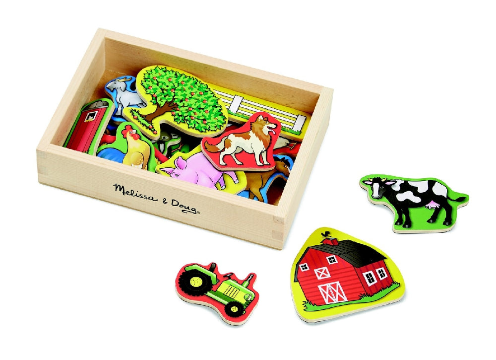 Easy to position and reposition again and again on any magnetic surface, these 20 wooden magnets offer endless farm-themed creative play opportunitiesall while improving hand-eye coordination and fine motor skills! Convenient wooden storage case keeps everything neatly stowed away after playtime. These colorful magnets with friendly graphics are great for matching, sorting, and storytelling. Suitable from 2 yrs+