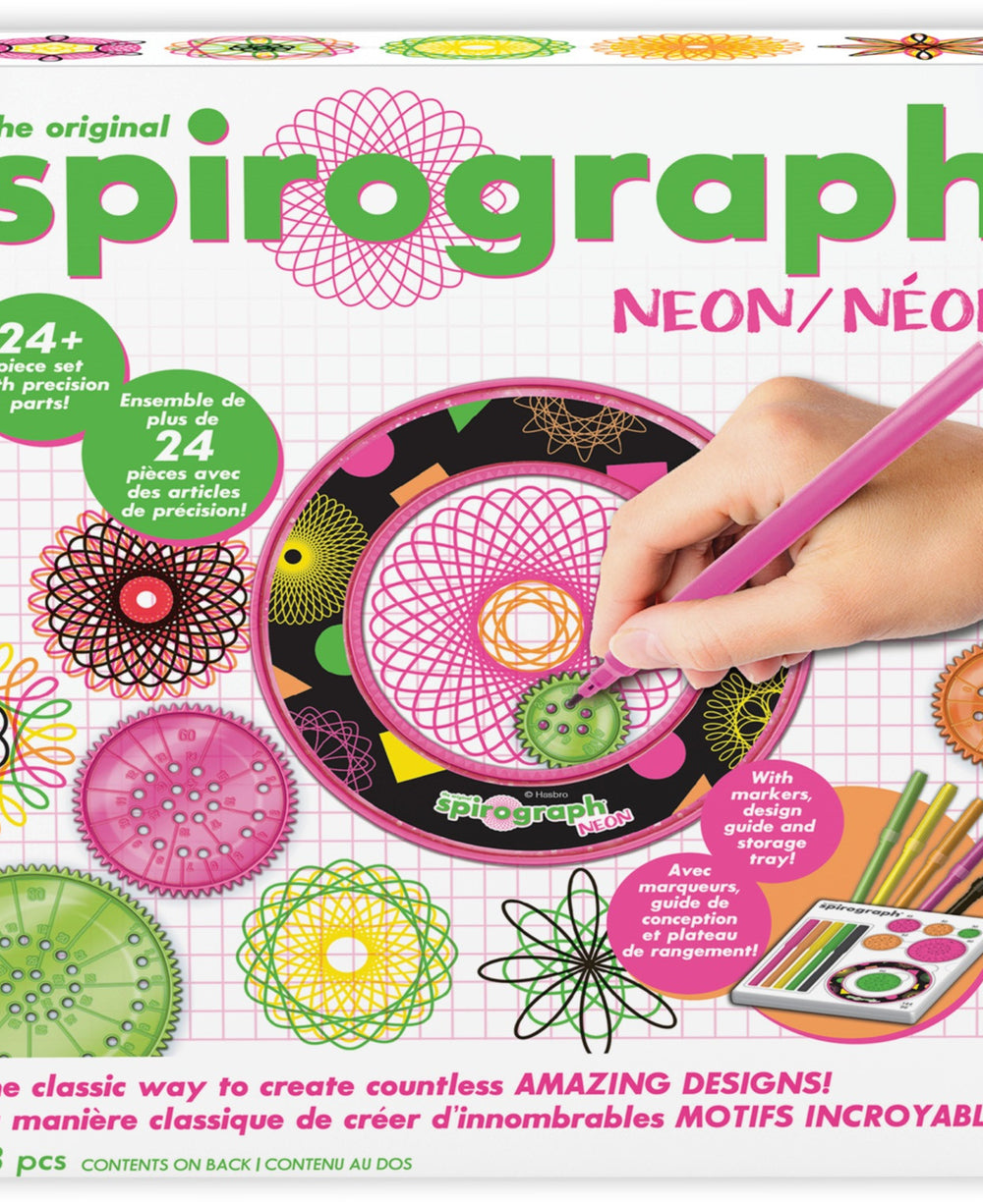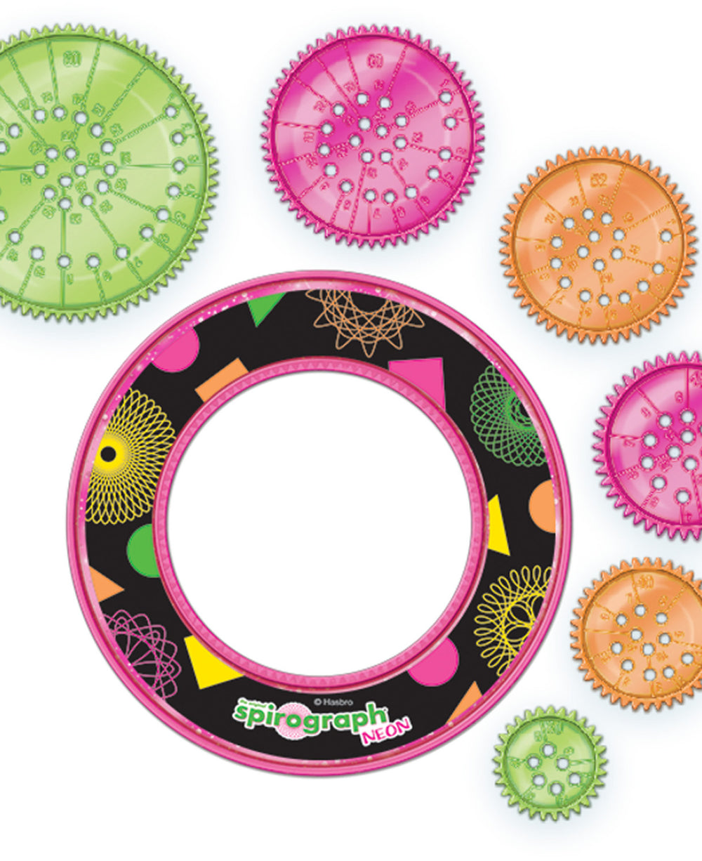 Create beautifully intricate designs with this Spirograph Neon Set. The distinctive wheels and rings of Spirograph have inspired and delighted generations of budding designers.
