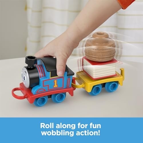 - Fun stacking & wobbling action: Stack the shape blocks on the cargo car and watch them wobble as the train is rolled along