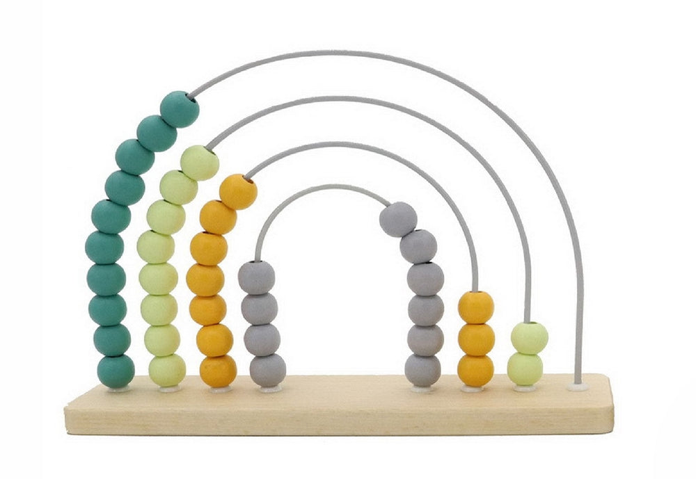 An abacus with a difference - solid natural timber base with arched wires threaded with timber beads, finished in non-toxic paint, in subtle modern tones. These not only look great but will help a child to develop fine motor skills and learn to count, add and subtract.