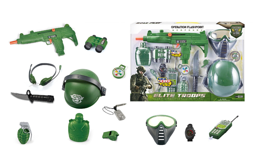 Suit up for action-packed adventures with this Armed Forces Elite Troops Role Play set! Perfect for young commanders, this collection lets kids imagine themselves as brave soldiers on daring missions. Complete with detailed military figures and accessories, it's ideal for creative play that sparks imagination and storytelling. Whether planning strategic operations or staging epic battles, this set delivers hours of engaging entertainment. Great for solo play or teaming up with friends for collaborative adventures. A fantastic choice for kids who love military themes and imaginative role-playing fun!