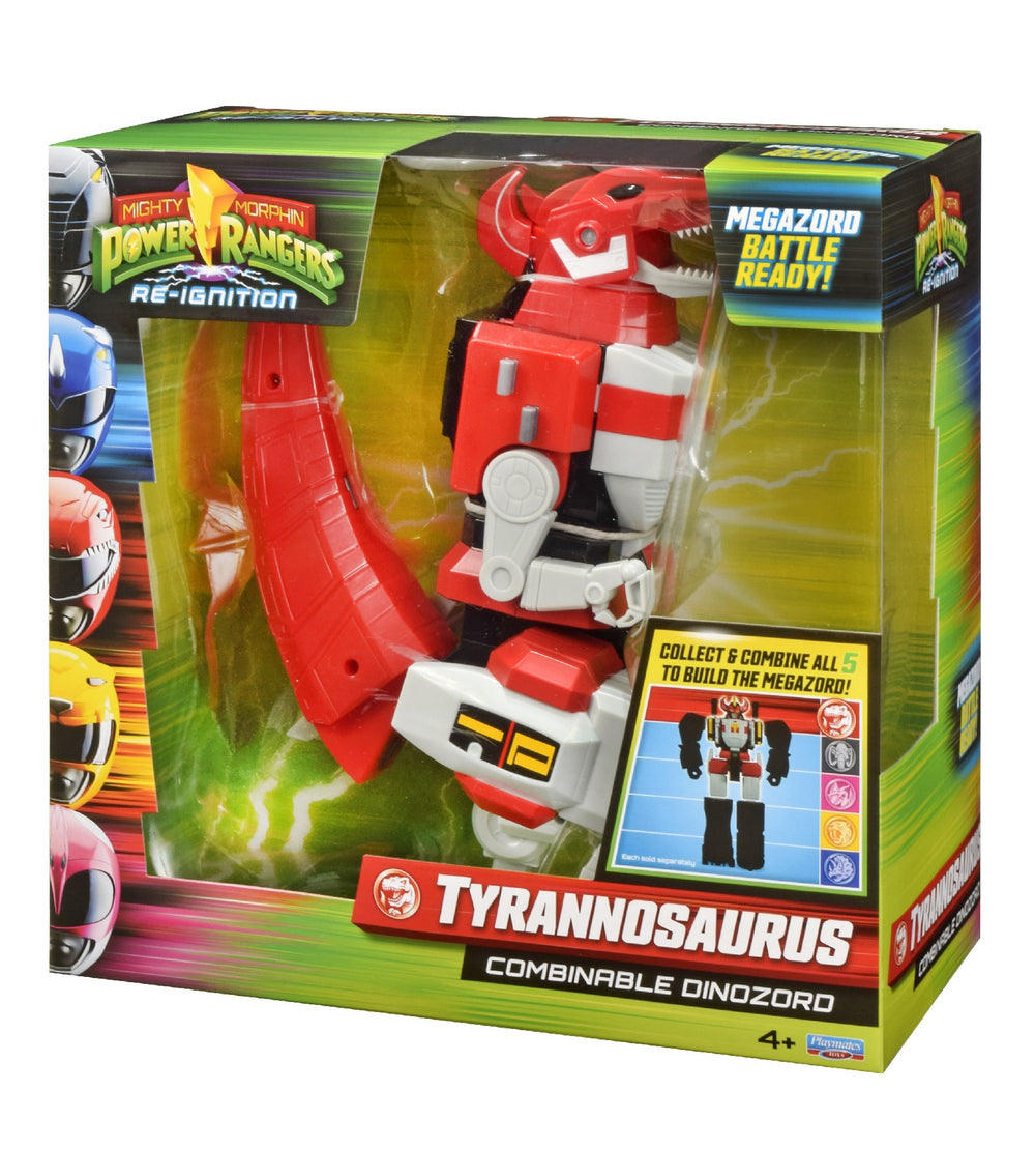 Unleash the power of the mighty Tyrannosaurus with the Power Rangers Combinable Dinozord! This incredible toy features a 6 inch action figure of the iconic Red Ranger, ready to take on any enemy that comes their way. But that's not all - this Dinozord can also transform into a powerful Megazord, combining with other Power Rangers figures to create the ultimate fighting machine. With its fierce T-Rex design and impressive articulation, this toy is perfect for any fan of the Power Rangers franchise. Don't miss your chance to add this epic Combinable Dinozord to your collection and join the battle against evil!