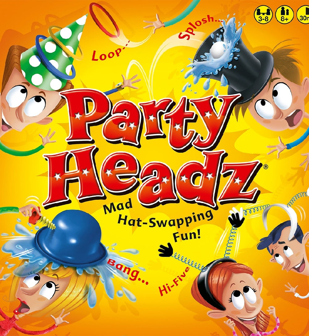With 8 silly hats to swap between players, there's a different challenge on every turn. Try playing ping pong on your head.....or with your Top Hat filled with water, play Hoopla with someone's Cone Hat or lose your head in a Deelay Bopper battle.