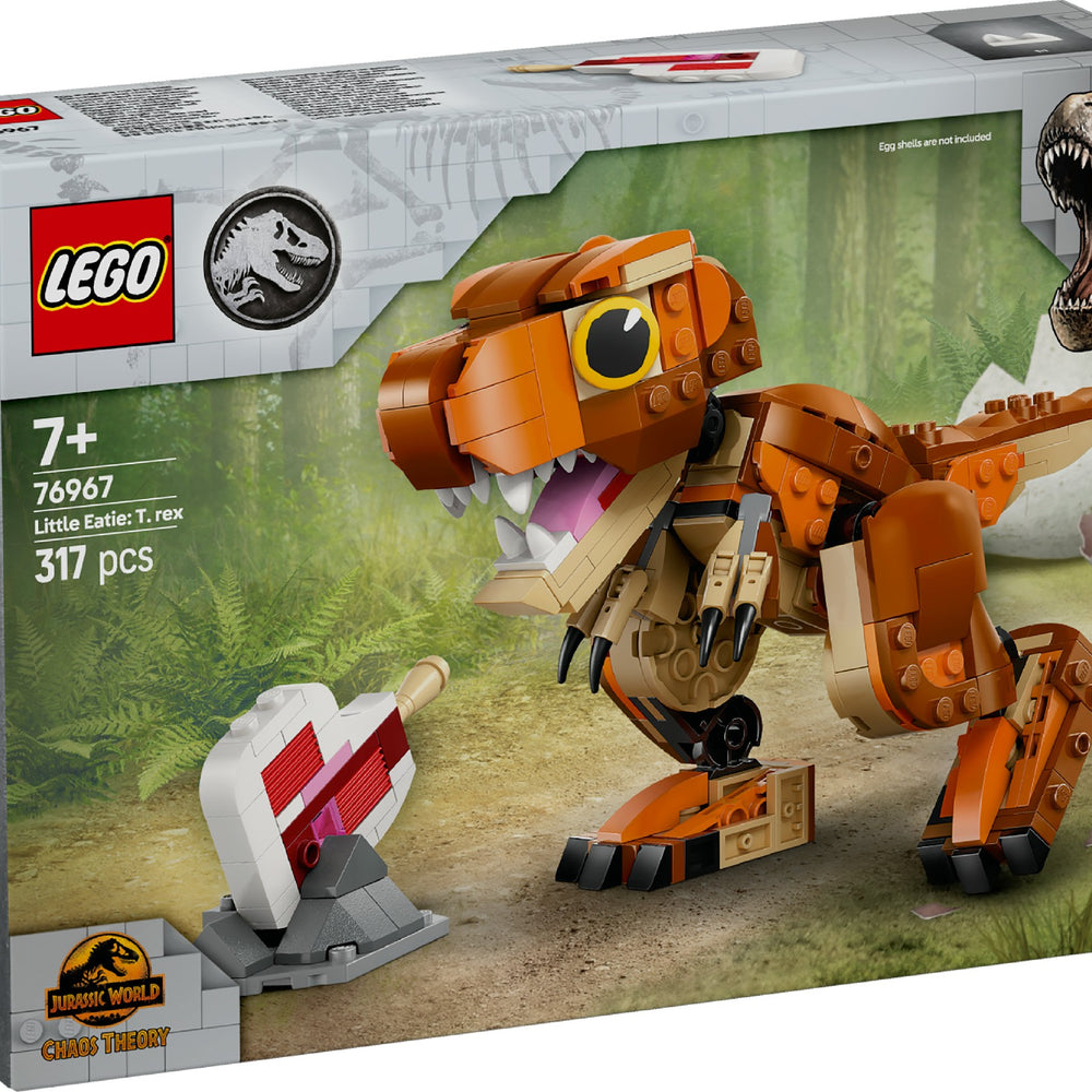 Exciting adventures, nurturing and care-play await young dinosaur fans aged 7 and up in this Little Eatie: T. rex (76967) LEGO® Jurassic World dinosaur toy model full of play-and-display possibilities. First, young dinosaur-tenders can assemble this LEGO dinosaur building kit, before diving into play as they explore the prehistoric world with Little Eatie from Jurassic World: Camp Cretaceous. This Jurassic World: Chaos Theory toy set features a brick-built T. rex figure with an interactive chomping jaw and movable tail and limbs that allow for different poses. Once play is over, the dinosaur toy for boys, girls and fans can be displayed on a shelf or desk.