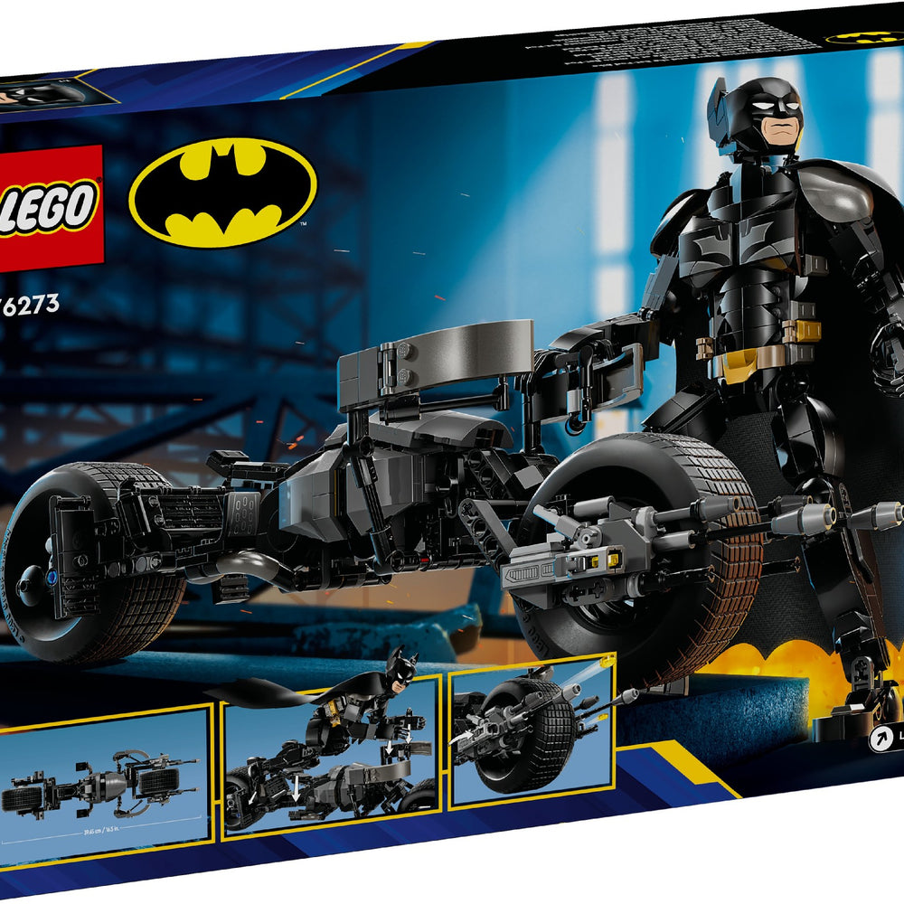 The posable LEGO® DC Batman™: Batman Construction Figure & the Bat-Pod Bike (76273) is the ultimate The Dark Knight movie action figure for fans of the iconic Super Hero aged 12 and up. Fully jointed and standing over 10 in. (26 cm) tall, this authentically detailed toy is as cool as it is collectible.