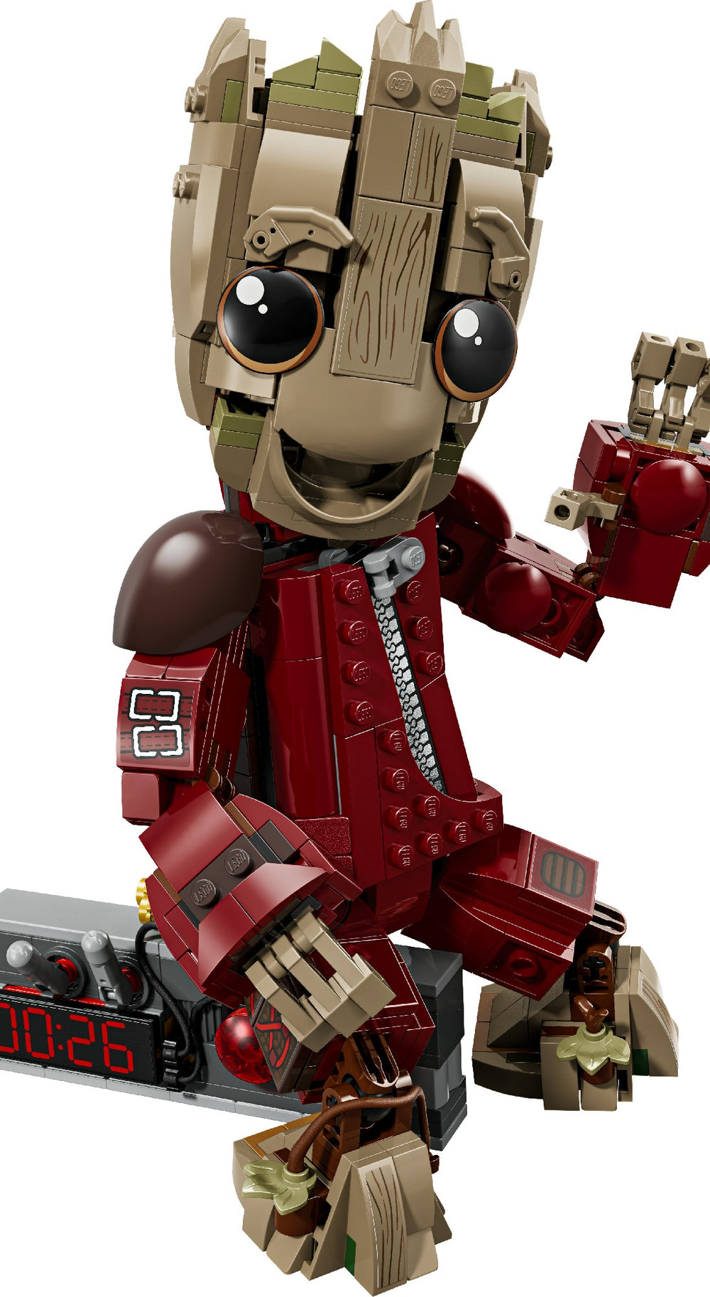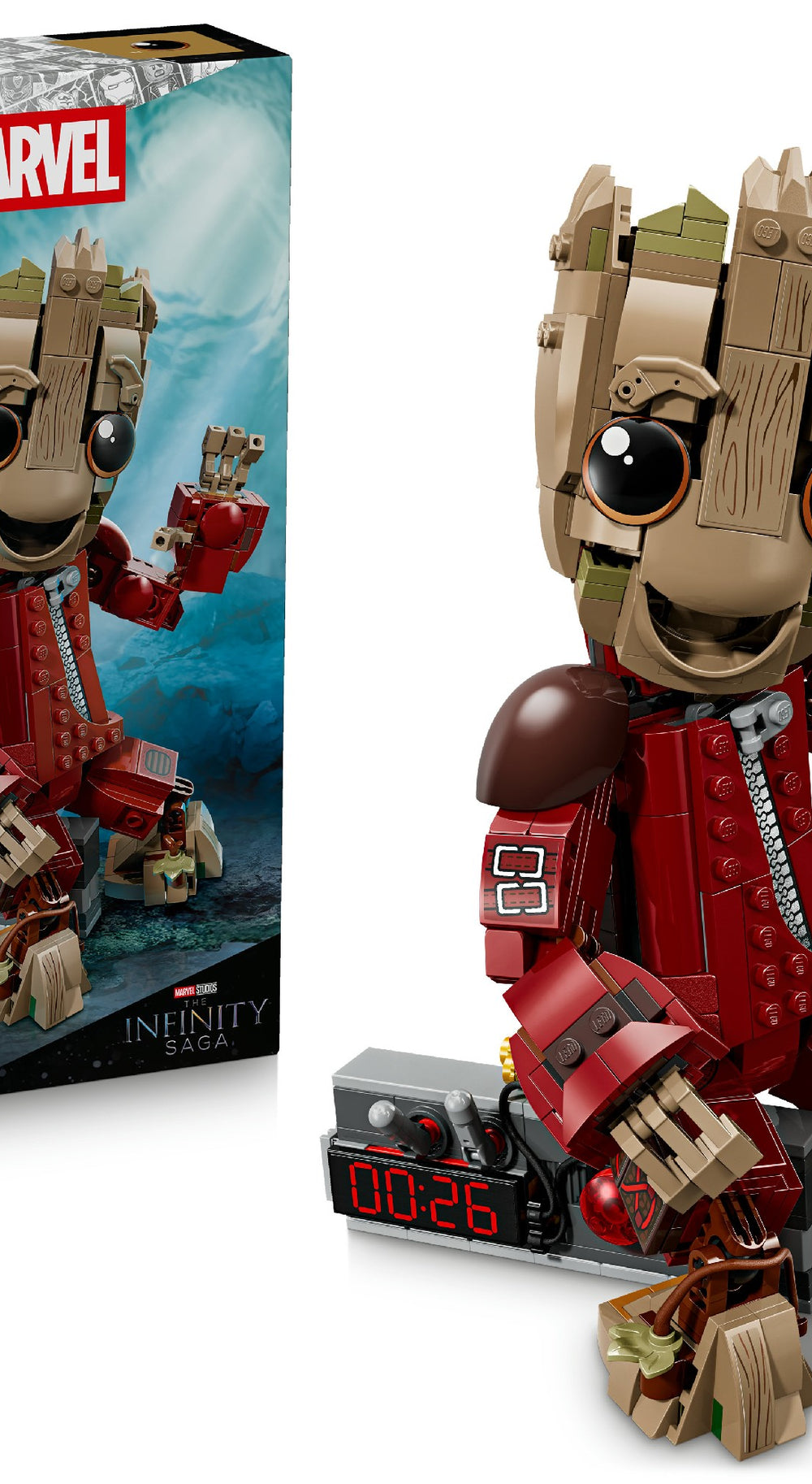 The Groot figure in this 604-piece building toy stands over 25 cm (10 in.) tall