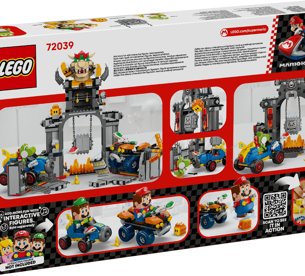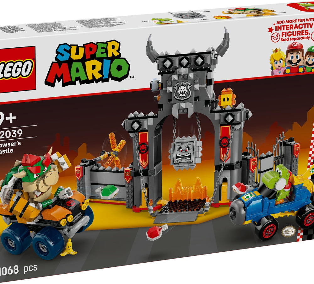 Get ready to race at Mario Kart™ – Bowser’s Castle with this LEGO® Super Mario™ toy vehicle racing set for kids (72039). A brilliant Nintendo® character gift toy for boys, girls and gamers aged 9 and up, the set features Bowser’s Castle, with space for Bowser to stand on top, foldout walls, a spinning Fire Bar and other fun functions. Drive, drift and launch shells with Bowser in the Standard ATV and Yoshi in the Mach 8 kart, smash through the castle walls, swerve away from the plunging Thwomp and topple the Lava Bubble. This building toy includes 4 LEGO Super Mario figures: Bowser, Yoshi, a Thwomp and a Lava Bubble. Add a LEGO® Mario™, LEGO® Luigi™ or LEGO® Peach™ figure (from sets 71439, 71440, 71441 or 72043 – sold separately) for interactive play, including Mario Kart sound/visual effects when they drive the vehicles. Explore the range of LEGO Super Mario: Mario Kart toy playsets (sold separately) for more vehicles and characters to expand the fun. This set contains 1,068 pieces.
