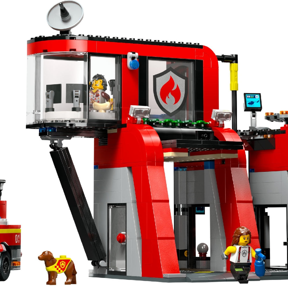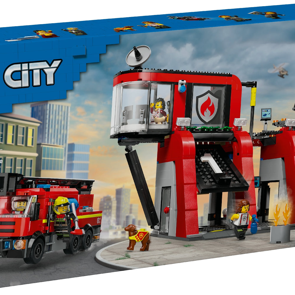 Fire Station with Fire Truck for ages 6+ – LEGO® City playset, featuring a modern fire station with a control center and a toy emergency vehicle for action-packed firefighting adventures