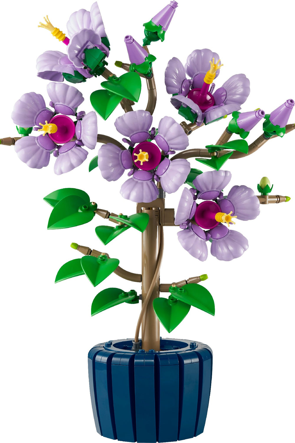 Enjoy building the LEGO plant, which features 5 large blooms, 4 flowers that are about to blossom and 2 young flower buds, before discovering the details. Capturing the gentle beauty of nature, the large blooms have lavender-coloured petals and yellow stamens, while the leaves are pale green. Once you’ve finished building the hibiscus, you can move the petals and position the leaves to add a touch of customisation to your creation.