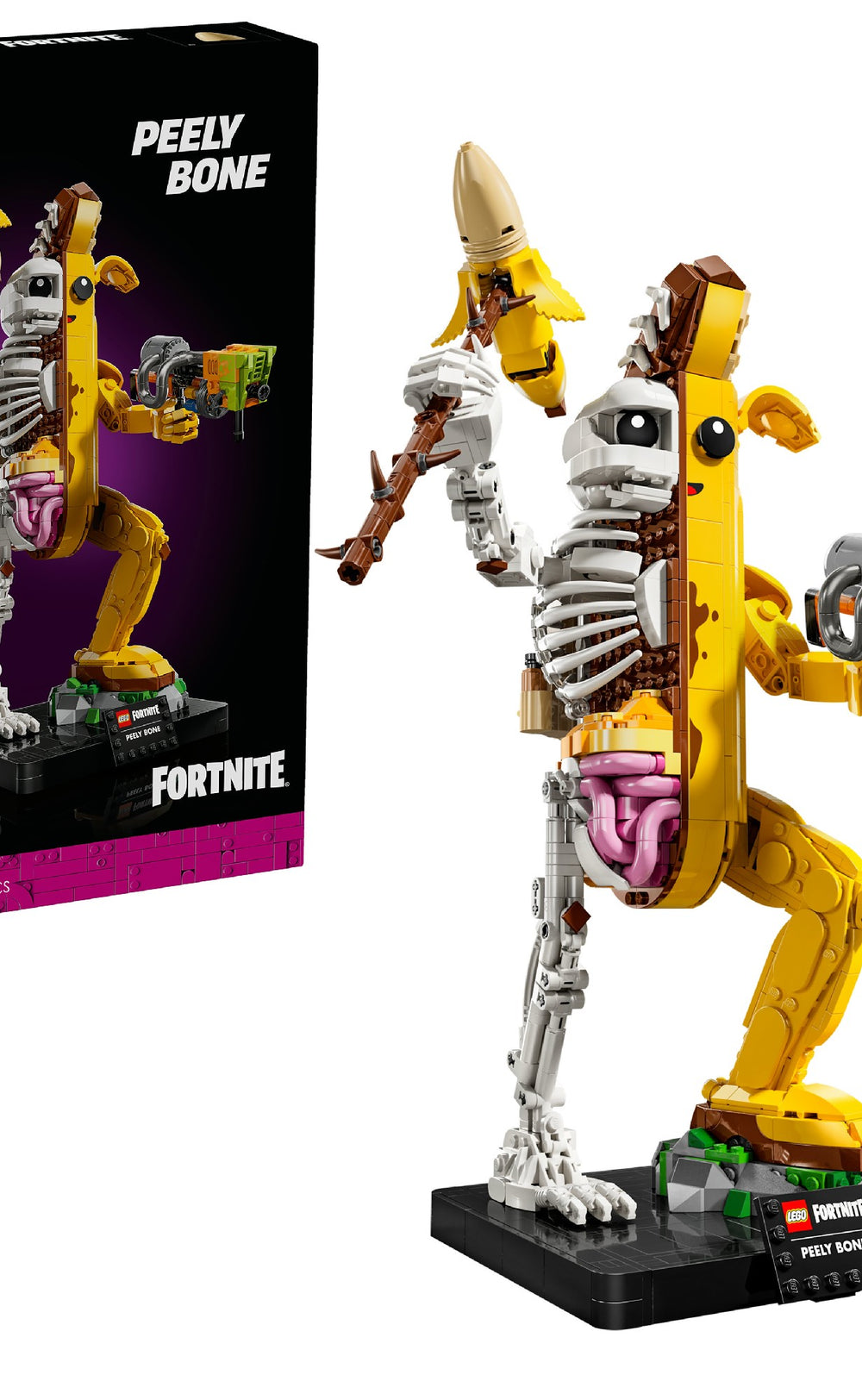 Fortnite fans will immerse themselves in an off-screen adventure as they assemble the brick-built iteration of Peely Bone, who’s half-banana and half-skeleton. They’ll delight in discovering the gaming toy’s moving arms and wrists, as well as its cool accessories, which include a Peely Pick Pickaxe, paint launcher and Banana Bag Back Bling.