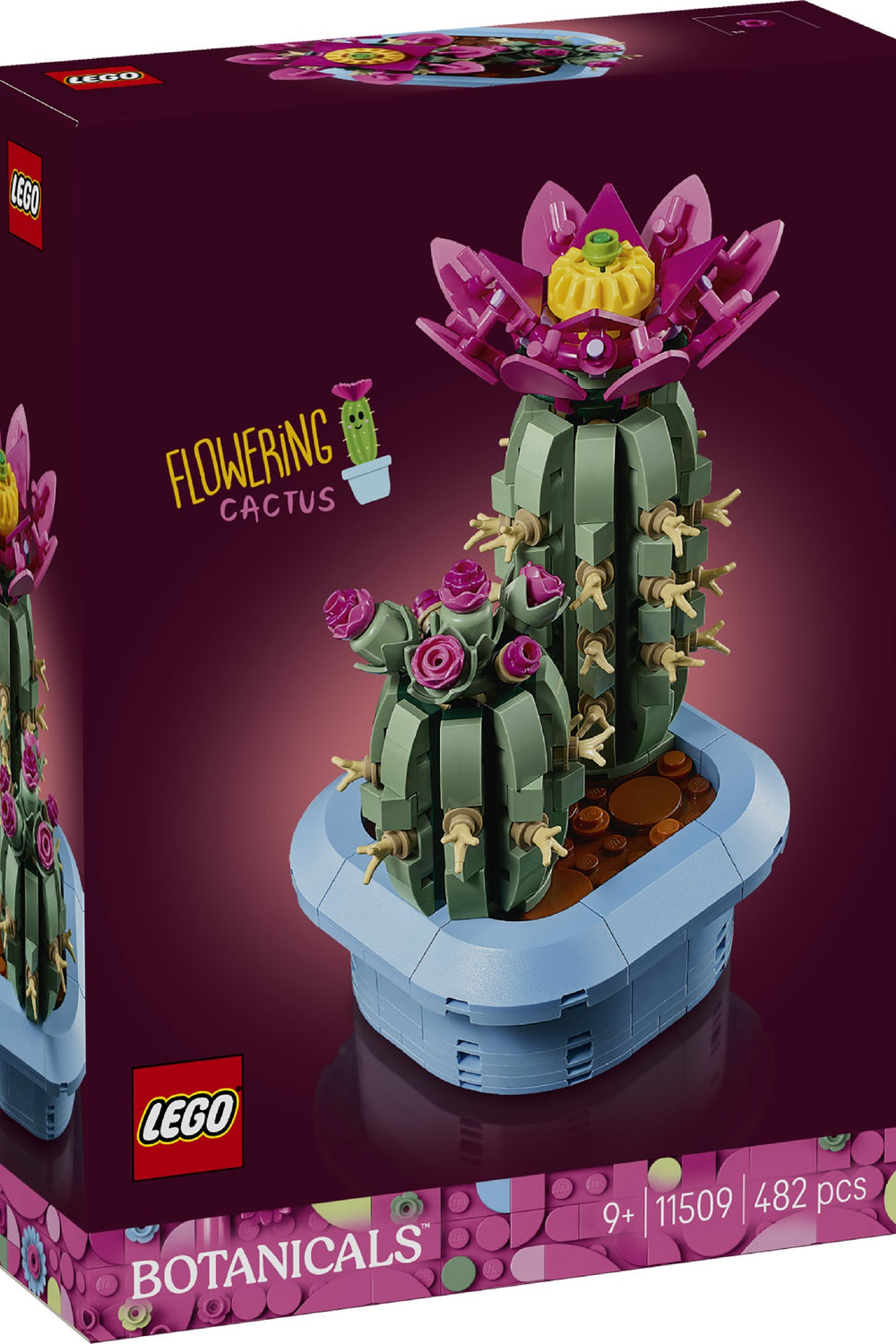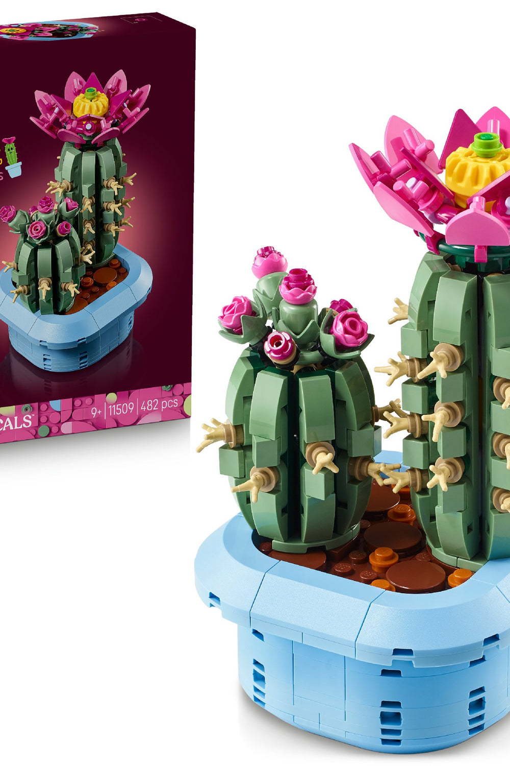 Delight young plant lovers with the LEGO® Botanicals Flowering Cactus (11509) building set for kids aged 9 and over. Packed with details, it lets girls and boys have fun creating cool cactus decor. Kids will feel their creativity flourish as they build 2 cacti models. The larger LEGO cactus is in full bloom and features a pink flower with a yellow centre on top, while the smaller LEGO cactus features pink buds in various stages of growth. The cacti are an authentic shade of green and are both displayed in a pastel blue plant pot, making it easy for kids to show them off as bedroom or home decor once they’ve finished building. A great gift for girls and boys on birthdays and other special occasions, as well as a gift for nature lovers of all ages, this LEGO Botanicals building set is available in the LEGO Builder app, where kids can zoom and rotate their builds and track their progress. Set contains 482 pieces.