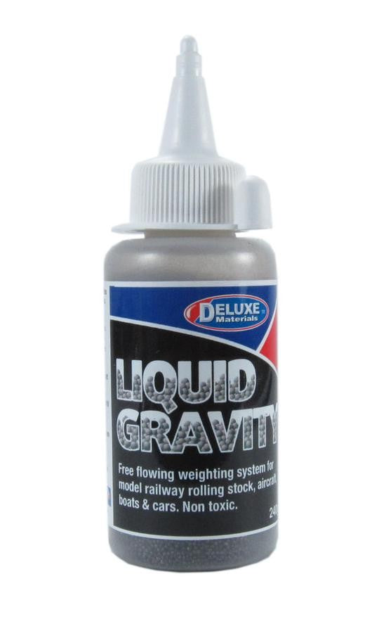 Liquid Gravity is a brand new non-toxic weighting system for models railway rolling stock, radio control models. This is specially designed to pour into and fill small cavities and set in place with an applied adhesive. Thus it will:. Improve stability of models and miniatures. Adjust centre of gravity of miniatures planes and boats