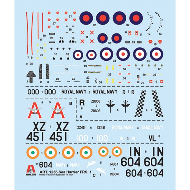 The British Aerospace Sea Harrier was a VTOL / STOVL (Short take-off and vertical landing) capable fighter, developed to equip the air arm sections of the British Royal Navy. It entered into service during the late 70s and early 80s with the main operational role of fleet air defence aircraft. In 1982 it was deployed on HMS Invincible and HMS Hermes during the Falklands war, fully demonstrating its operational effectiveness during the conflict. Unable to match the speed and flight characteristics of opposing aircraft such as the Mirage 111, it was nevertheless extremely manoeuvrable and reliable in all operating conditions. The Sea Harrier was equipped with an effective offensive armament capability, consisting of two 30mm ADEN guns installed in pods under the fuselage and by 4 sub-wing hardpoints to launch air-to-air missiles.