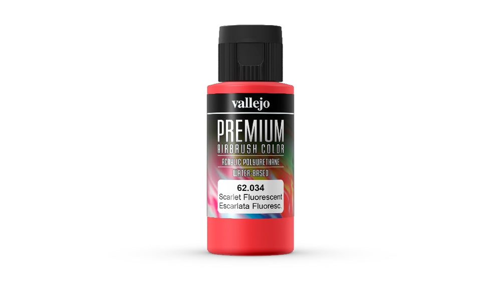 Vallejo Premium Colour Fluorescent Scarlet 60 ml Acrylic Airbrush Paint 62034