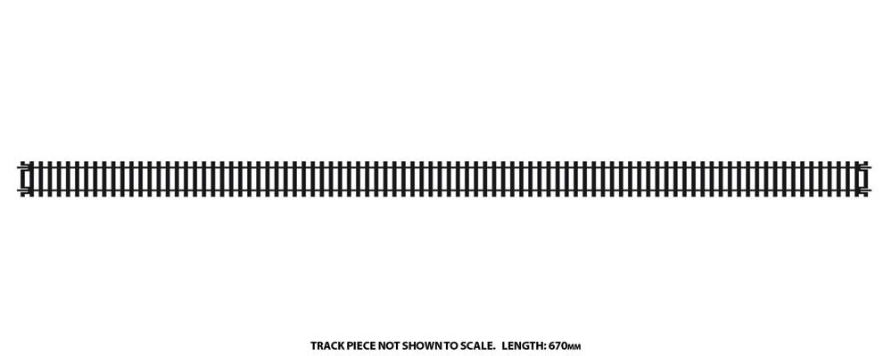 The Hornby long straight track has a length of 670mm, a black painted finish and is the perfect choice for those just beginning their railway layout.