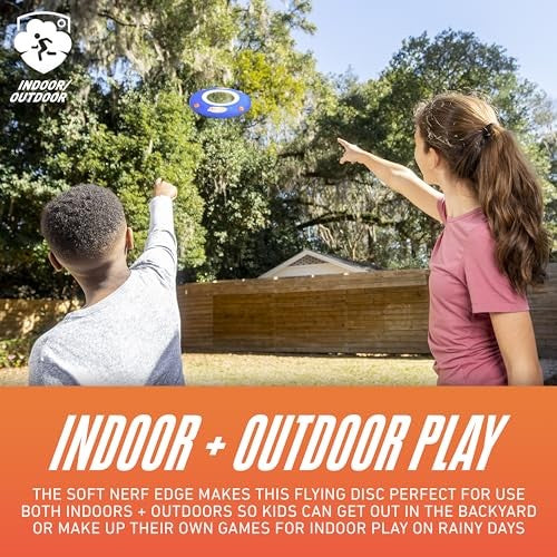 - INDOOR + OUTDOOR TOY: The soft NERF edge makes this flying disc perfect for use both indoors and outdoors so kids can get out in the backyard for Ultimate fun, or make up their own games for indoor play on rainy days