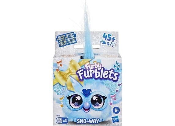 Furby and all related properties are trademarks of Hasbro. It is always time to celebrate with Sno-Way the holiday Plush belts friend hear over forty-five festive tunes and sounds with this mini Furby electronic toy for girls and boys. Sno-Way has icy blue and white plush and plays fun holiday themed music to get everyone in the spirit. Clip them to a backpack or other travel bag with the keychain clip to bring the Furblets toy anywhere you go.