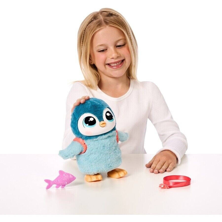 Waddles moves and sounds just like a real penguin. Feed him with his feeding fish and give him a cuddle as he reacts to your touch. Watch his wings flap and his head bob as he walks! Waddles makes so many funny and sweet sounds - he feeds, giggles, sneezes and may even let out a cute fart too!