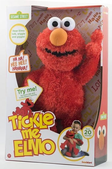 Tickle Me Elmo talks, wiggles & giggles. With 20 favour Elmo sounds we can all have a laugh and wiggle together.