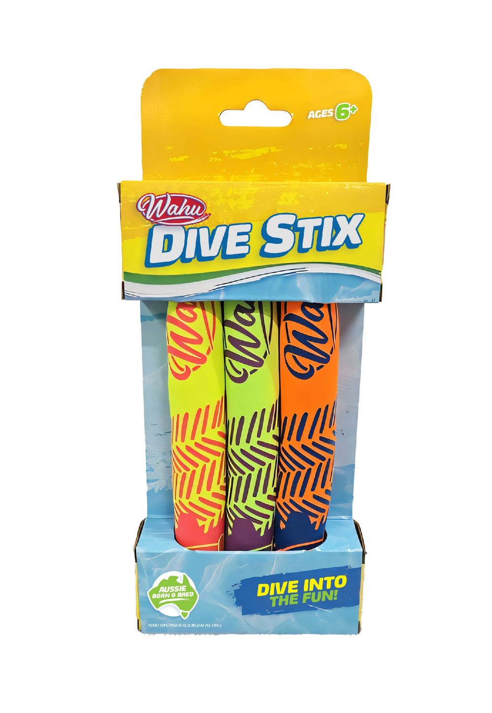 Made from safe and soft neoprene the Wahu Dive Stix are ideal for developing children's dive and retrieve skills. They are also excellent for building underwater swimming confidence in young swimmers. Includes x4 colourful dive stix.