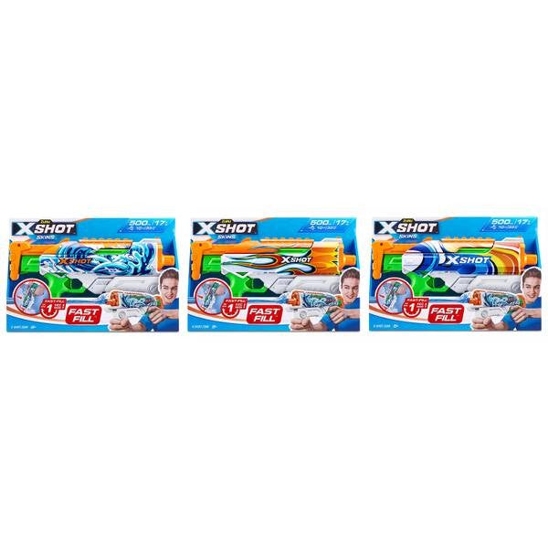 Make Summer your own with the New X-Shot Water Fast Fill Skins range! X-Shot Fast-Fill Hyperload allows you to refill your blaster in just 1 second and get back to the water blaster action long before your opponents. Just dunk, fill and close with rapid sealing technology. It shoots up to 33 feet /10 meters with its 500ml/ 17 Fl OZ. water capacity tank!