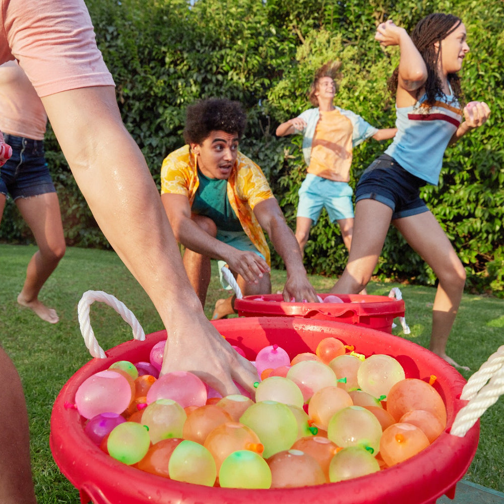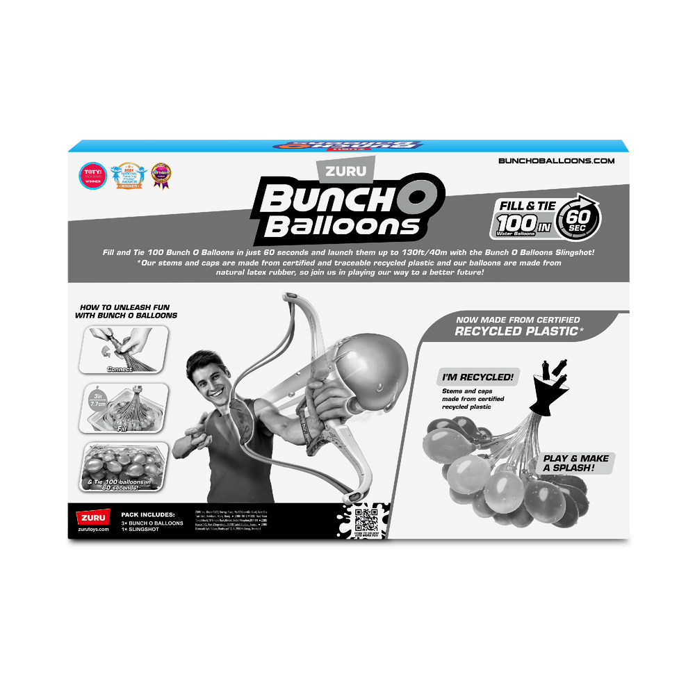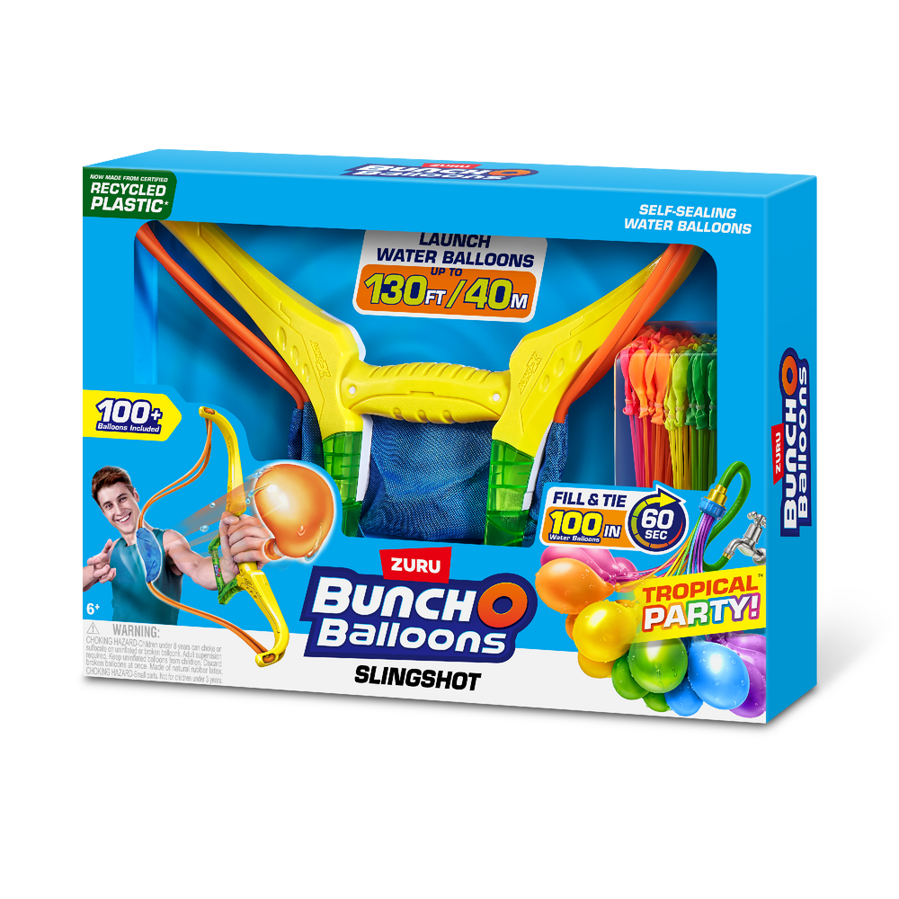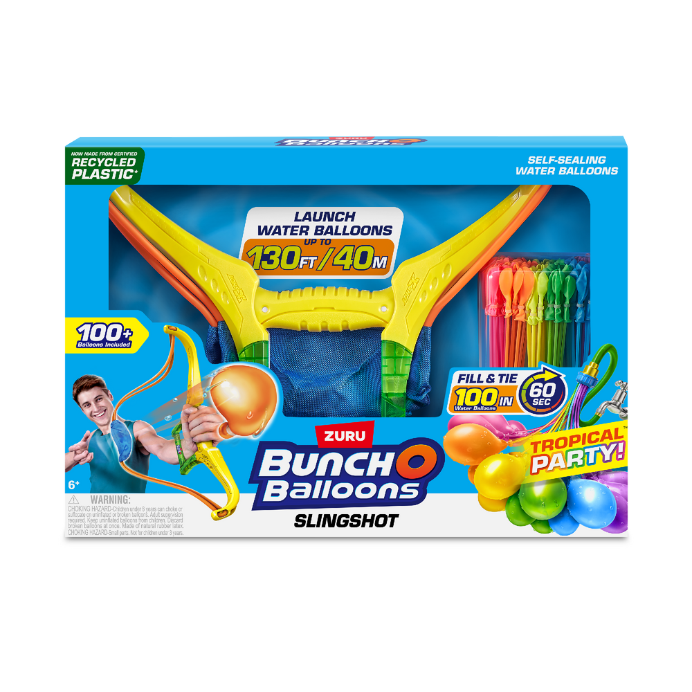 Unleash the thrill of summer with Zuru Bunch O Balloons! Fill and Tie 100 water balloons in less than 60 seconds with these sensational self-tying water balloons! With innovative O-Ring technology and Rapid Fill capabilities, say goodbye to the stress and mess of filling individual water balloons and say hello to never ending splash out loud fun! Simply connect to a tap or a hose, fill and make hundreds of water balloons with no hand-tying. With the Bunch O Balloons Slingshot, you can soak your targets from up to 100 feet / 30 meters before they can even see it coming! Simply load a water balloon into the Slingshot pouch, draw, aim and fire! Take them to a pool party, to your backyard, to a barbecue, the beach or anywhere else to unleash summer no matter where you are! It includes all you need for an epic and refreshing water fight, with the hassle-free and award-winning water balloons that fill by the bunches, auto-ties, and makes summer a lot easier to unleash! Includes 1 Bunch O Balloons Slingshot & Bunch O Balloons (35 Self-tying, Rapid Fill Water Balloons in Each).