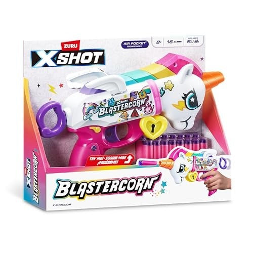 - Unleash the Blastercorn!: XSHOT Blastercorn comes in a unicorn-themed skin adding enchantment and whimsy to your blasting adventures!