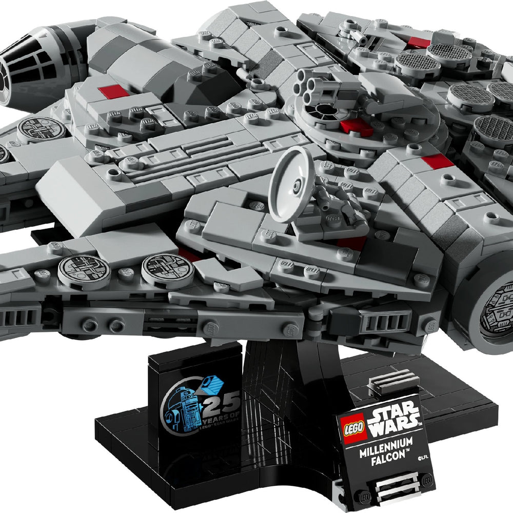 Made for display – The buildable stand has a nameplate and LEGO® Star Wars™ 25th anniversary brick, and it’s designed to display the Millennium Falcon at a dynamic angle