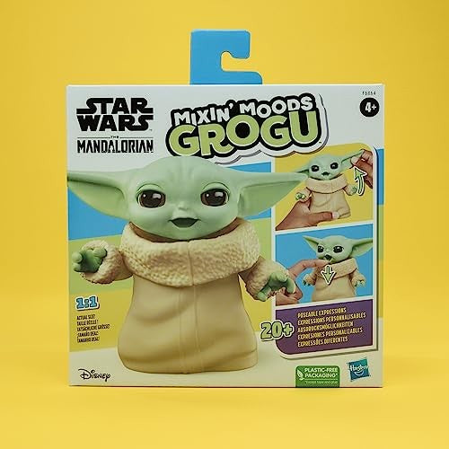 A little troublemaker with big feelings, this Grogu toy (affectionately referred to by fans as "Baby Yoda") stands at 5 inches tall (12.5 cm)\par \par - 20+ POSEABLE EXPRESSIONS: This Grogu figure features soft moldable skin on his head, face, and ears, so kids can mix up more than 20 different expressions. RECREATE FAVORITE GROGU MOMENTS: With articulated ears, eyelids, mouth, neck, and arms, Grogu fans can pose him to recreate their favorite moments from entertainment - ENTERTAINMENT-INSPIRED: This interactive toy features design and deco inspired by the fan-favorite character from The Mandalorian live-action series on Disney+ - STAR WARS GIFT FOR KIDS: This Star Wars figure makes a great gift for 4 year old boys and girls and is the perfect addition to any Star Wars fan's collection.