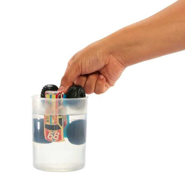 The Hot Wheels® Monster Trucks Color Reveal™ trucks pack awesome surprises! Inside each barrel drum is one 1:64 scale Hot Wheels® Color Shifters™ Monster Truck that's covered in special Color Reveal™ coating and a clip-on water tank. For the initial reveal, fill the drum with water and swirl the truck around in it until the water changes color, then pull it out to reveal the Monster Truck and its deco! Want to change its appearance again? Fill the drum with ice cold water and dunk it in to watch the colors magically change! Change it back by dunking it in warm water! Use the clip-on water tank to spray oncoming Color Shifters™ trucks with deco-changing water for an epic water battle. Kids will want the entire collection. Each sold separately, subject to availability. Colors and decorations may vary.