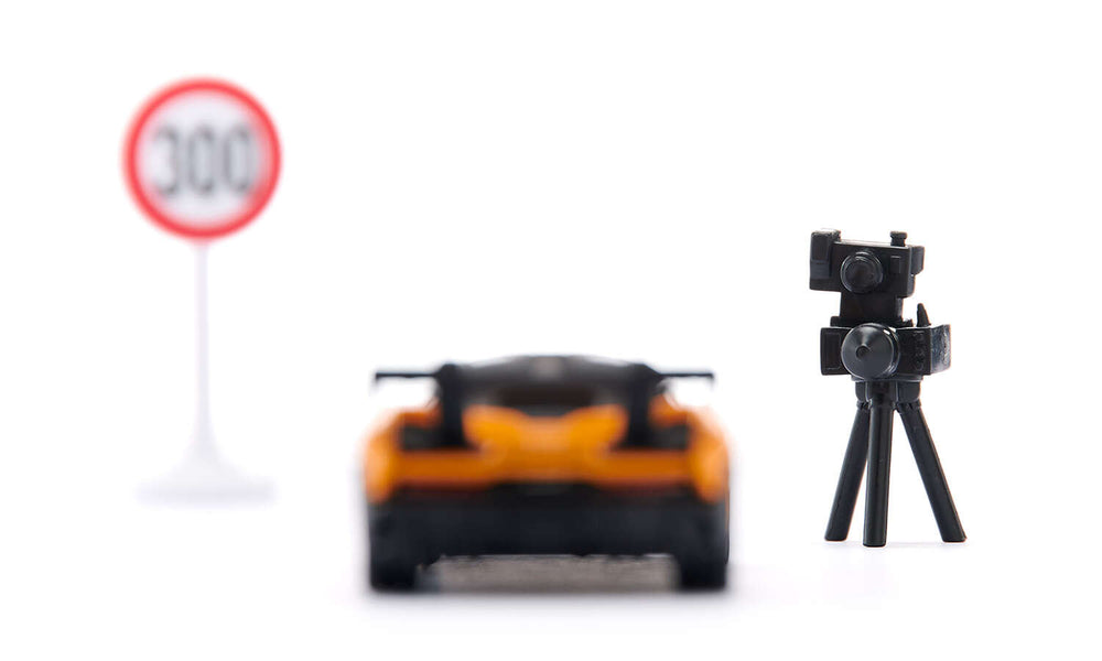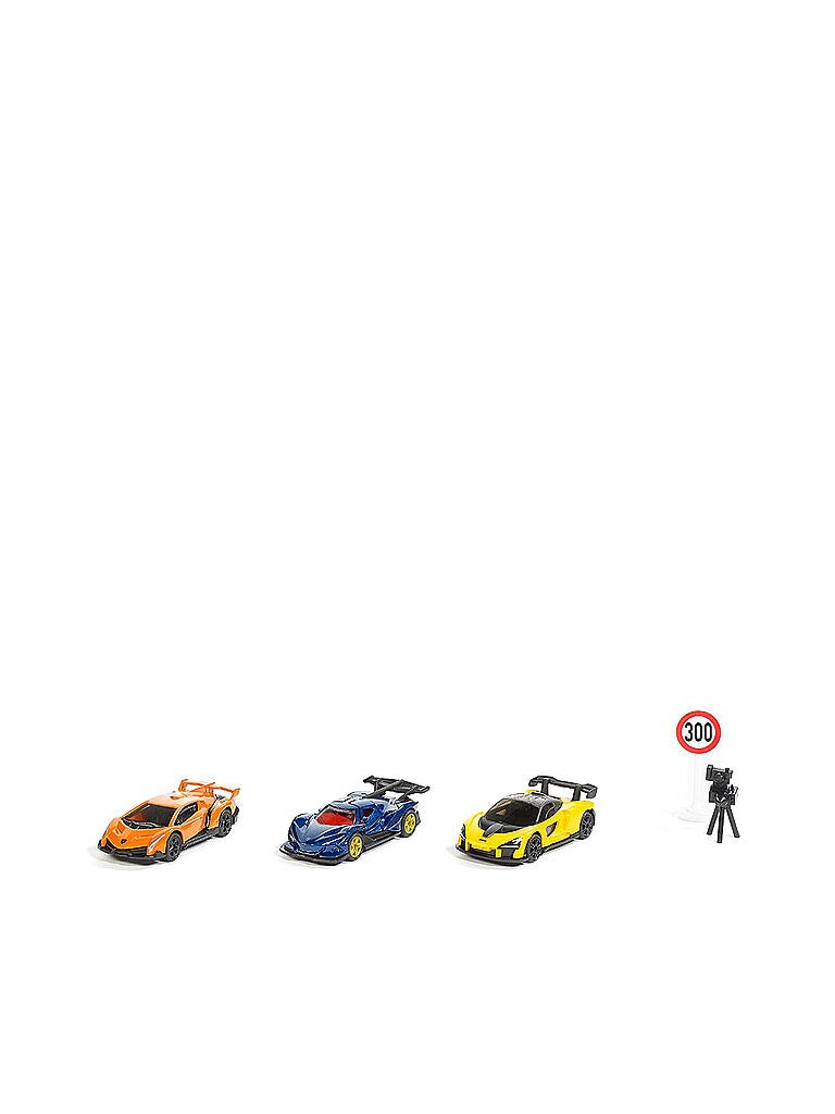 Exceptional Gift Set Of Horsepower Ostentation Featuring Lamborghini Veneno, The Apollo I.E., And The Mclaren Senna Along With A “300 Km/H” Road Sign And A Speed Camera, Because One Thing Is Clear: With Such Horse Powers, The 300 Km/H Limit Is Soon Smashed!