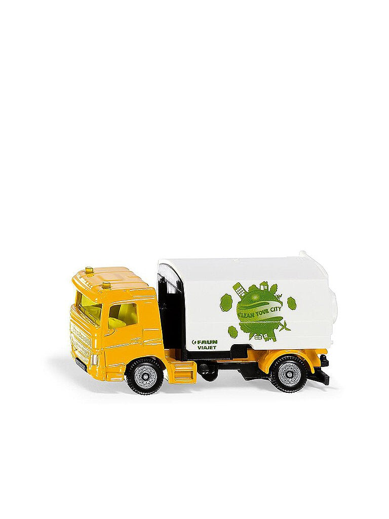 Whether it’s a pedestrian zone or a residential area – the street sweeper from Faun Umwelttechnik keeps the whole town clean! Thanks to free-running wheels and a twin-axle plastic chassis it is especially manoeuvrable and works extremely well on every road and square. With a metal driver’s cab plus sweeper superstructure and suction device made of plastic it is ideally equipped for every cleaning job regardless how dirty it is. For emptying the dirt container can be swung upwards. With its bright orange driver’s cab the street sweeper is visible even from afar. The motto “Clean your City” is resplendent on the dirt container. Recommended age: 3 - 10 years About Siku: Since 1921 SIKU is the range of toy vehicles and related products manufactured by the German company Sieper Lüdenscheid GmbH & Co. KG in Lüdenscheid Germany. The company makes many vehicles but the 1:55 scale Super Series die-casting line is the staple so Siku could historically be considered the German matchbox. The company also owns the famous producer of HO scales Wiking-Modellbau.