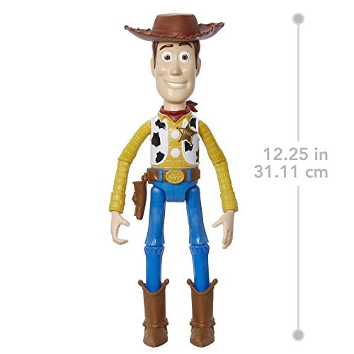 Reach for the sky! This large Woody action figure will bring big thrills to fans of the Disney and Pixar s Toy Story sheriff. With the super posability of 13 movable joints and a larger size that s easy to handle it s a grand opportunity for fans to re-enact signature moves and dynamic poses of the pull-string toy hero and imagine their own. At 12.25 inches tall he s the perfect size to take along on every adventure! Fans can collect all the movie-authentic large figures sized relative to each other for realistic storytelling. Each sold separately and subject to availability. Makes a great gift for Toy Story fans ages 3 years and older. Colors and decorations may vary.