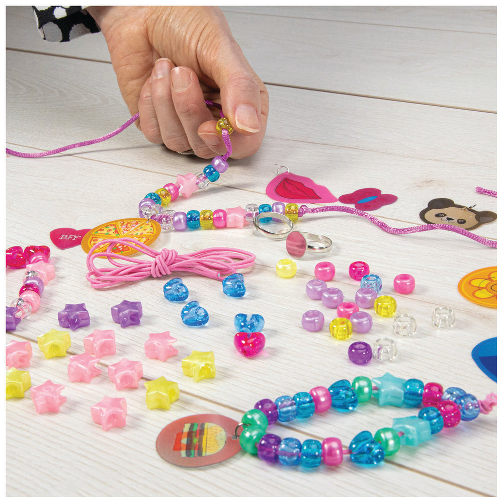 Create fun necklaces, bracelets and rings by combining picture changing discs with assorted beads. Amaze your friends when they see the pictures change on your jewellery. Fun to make and to wear. Contents: 10 picture changing discs, 120 round, 40 heart and 40 star pony beads, silky cord, elastic, 2 rings, sticky pads and guide. Age: 5 yrs+