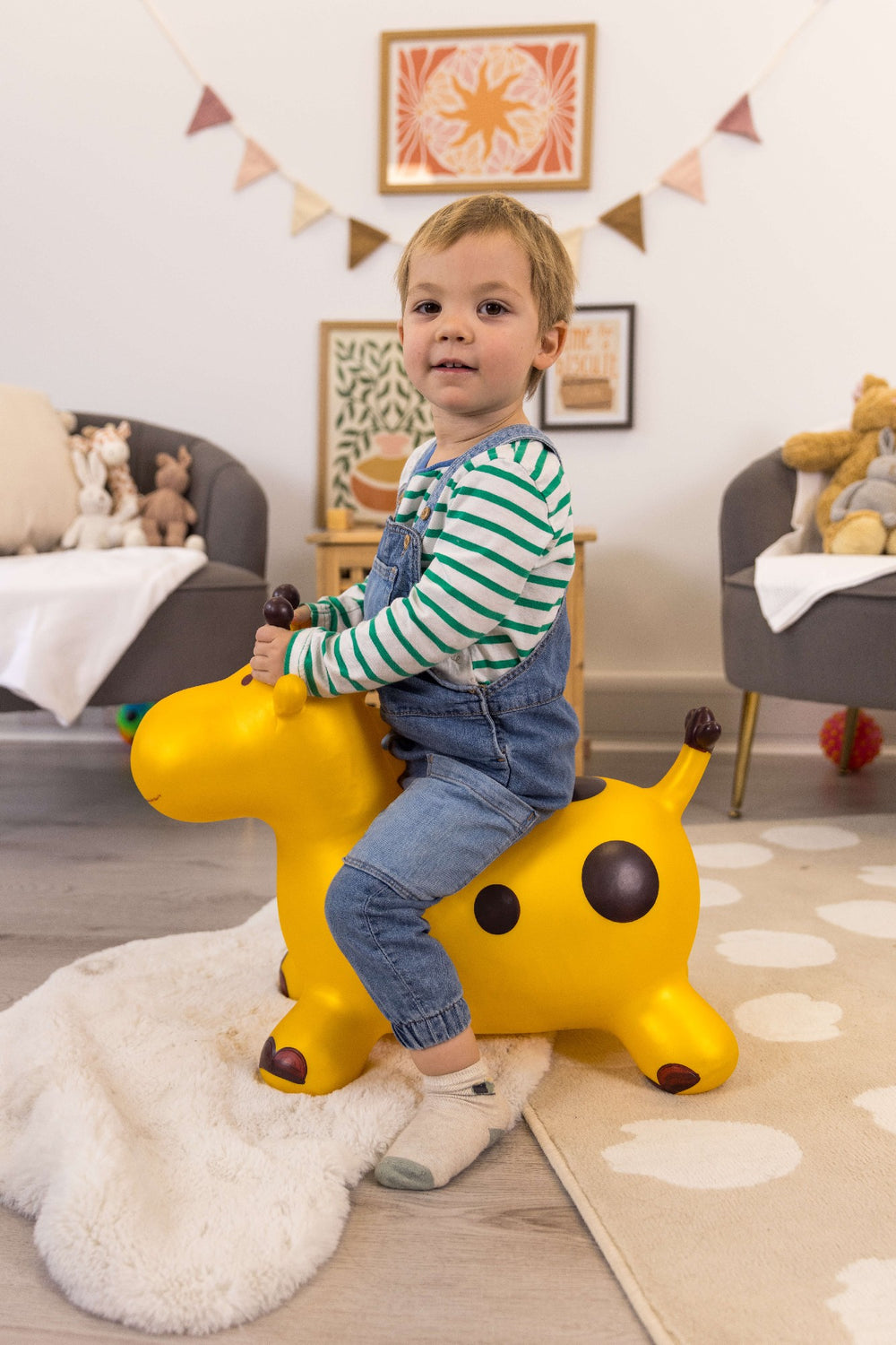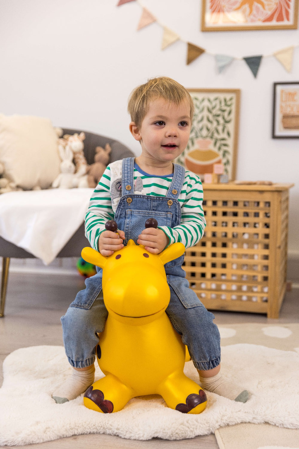 Not since the past crazes of the Rubik's Cube, My Little Pony, Cabbage Patch Kids and Space Hoppers has the children's toy market seen a product that has captured the imagination of children as much as the range of inflatable bouncing toys from Happy Hopperz®.Happy Hopperz® is a collection of bright, inflatable animal toys that not only rival the Space Hoppers of the 1970's but take BOUNCING to a whole new level. Created with ears & horns for children to grip on to and feet to steady the bounce, these wonderful kids' toys come in a variety of different animal styles and colours that give 'Old Macdonald' a run for his money!Not only are these loveable toys fun to play with but they also help children strengthen core muscles, increase balance control and develop co-ordination skills. They encourage imaginative play, promote physical exercise and develop self-confidence.• Inflatable bouncy toy• Available in various different designs• Made from Phthalate free PVC• Helps to strengthen core muscles• Suitable for: 12 months+.
