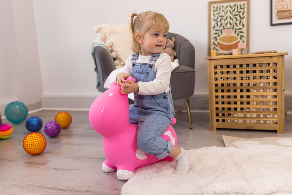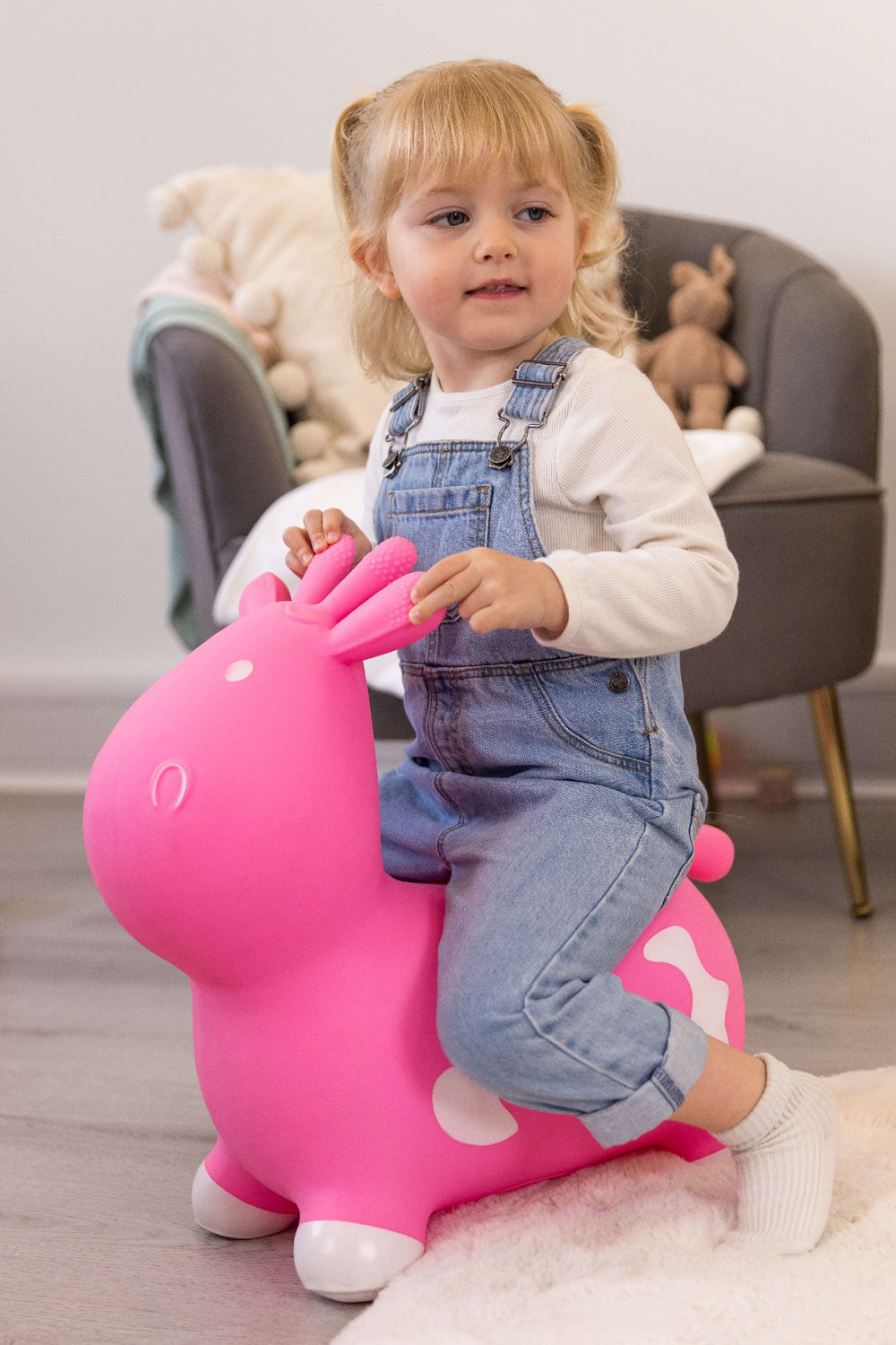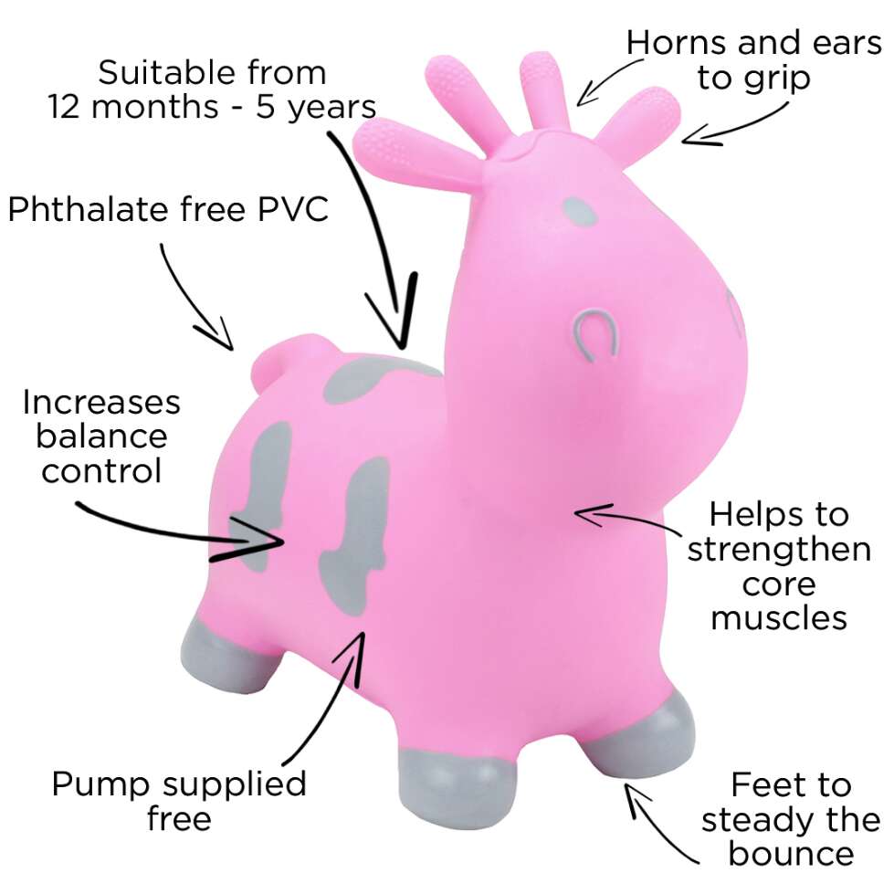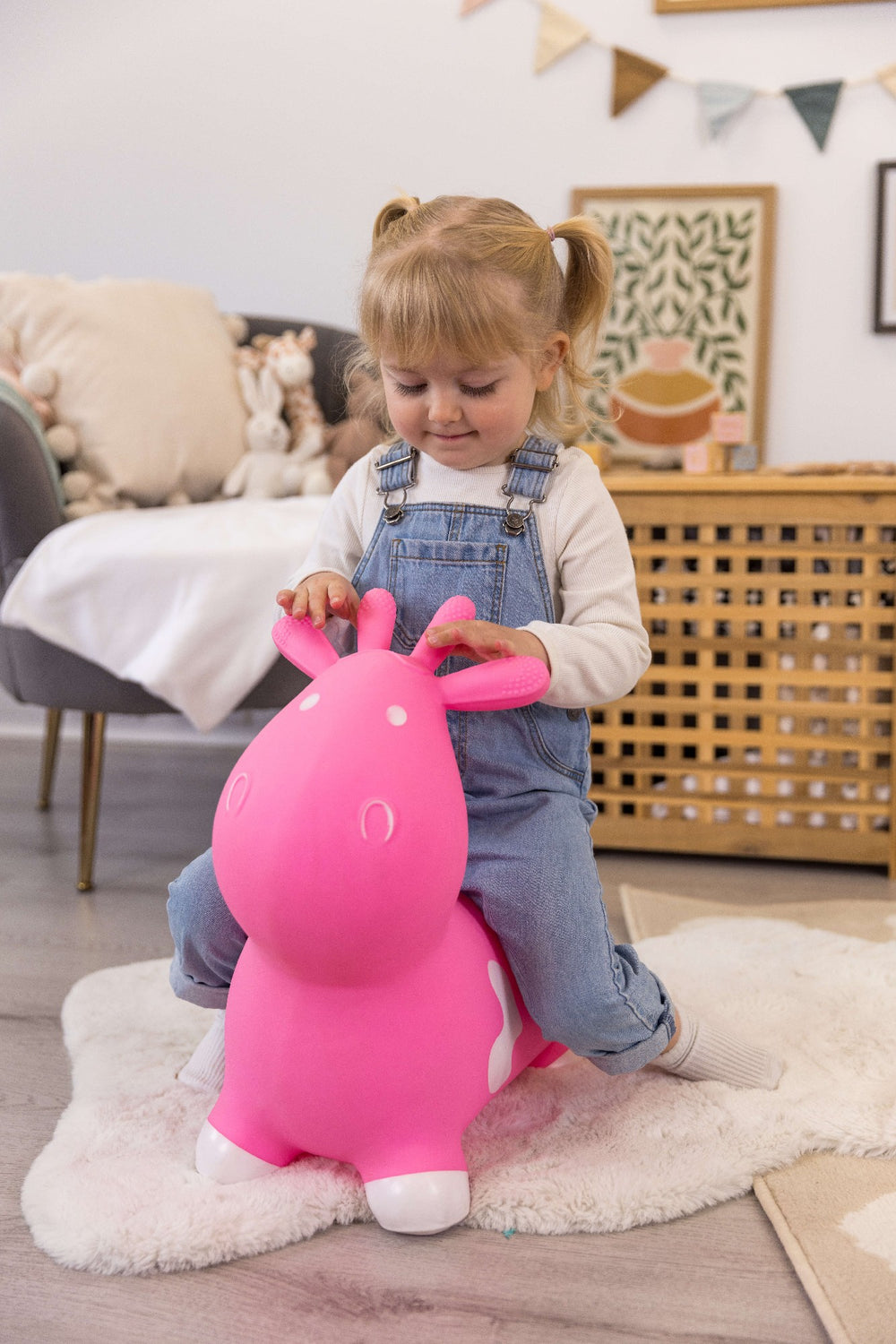 Not since the past crazes of the Rubik's Cube, My Little Pony, Cabbage Patch Kids and Space Hoppers has the children's toy market seen a product that has captured the imagination of children as much as the range of inflatable bouncing toys from Happy Hopperz®.Happy Hopperz® is a collection of bright, inflatable animal toys that not only rival the Space Hoppers of the 1970's but take BOUNCING to a whole new level. Created with ears & horns for children to grip on to and feet to steady the bounce, these wonderful kids' toys come in a variety of different animal styles and colours that give 'Old Macdonald' a run for his money!Not only are these loveable toys fun to play with but they also help children strengthen core muscles, increase balance control and develop co-ordination skills. They encourage imaginative play, promote physical exercise and develop self-confidence.• Inflatable bouncy toy• Available in various different designs• Made from Phthalate free PVC• Helps to strengthen core muscles• Suitable for: 12 months+.
