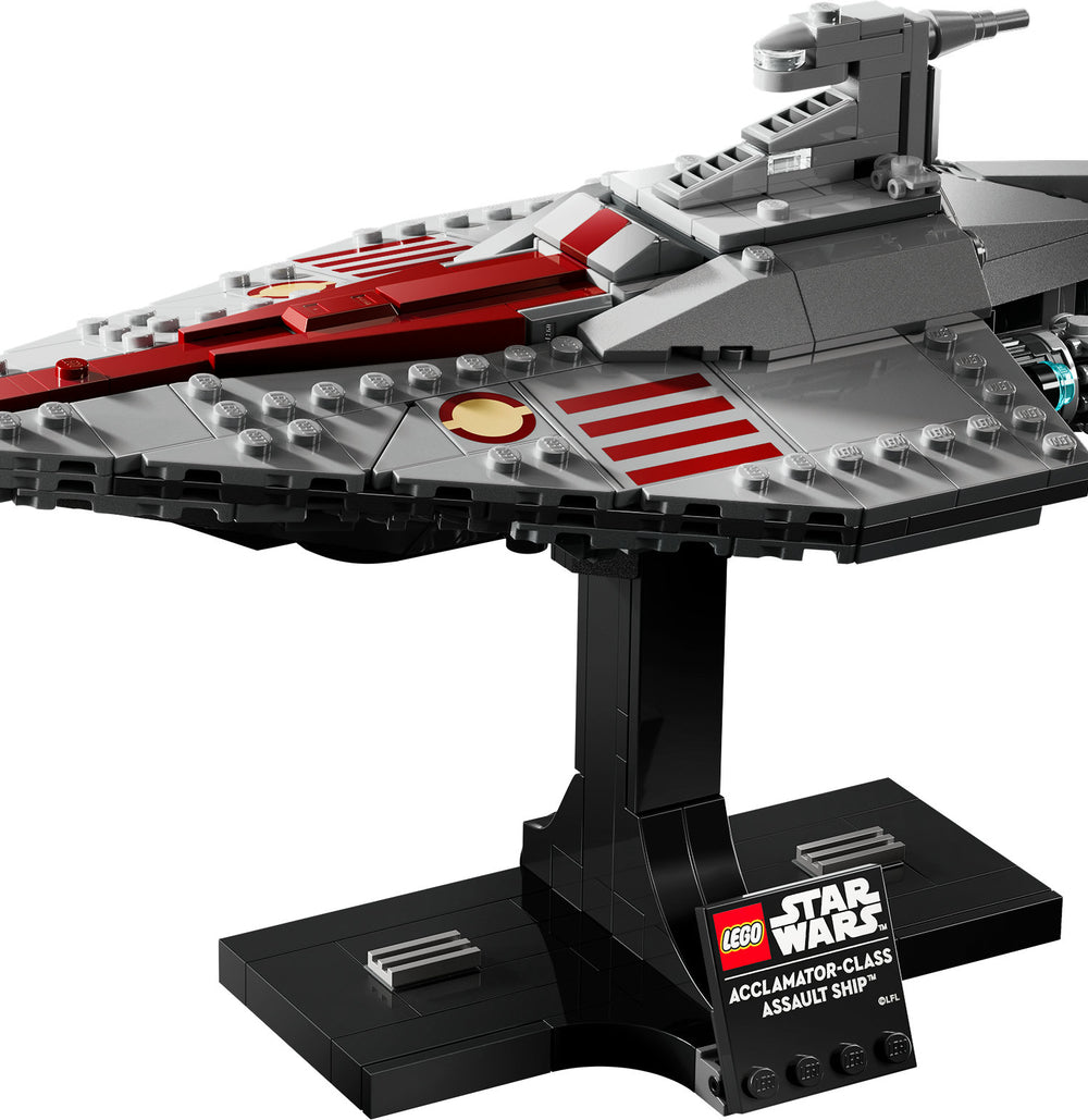 Build-and-display starship model – Relive dramatic Battle of Geonosis scenes as you build a mid-scale LEGO® Star Wars™ recreation of an Acclamator-Class Assault Ship