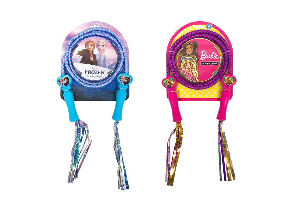 Keep kids active with the Frozen and Barbie skipping ropes. 2.1 m long (7 feet) great to jump solo or with a friend. Try to master some skipping tricks and skills. 2.1m long Favorite characters Great for health and fitness Style available: Frozen/Barbie 3+