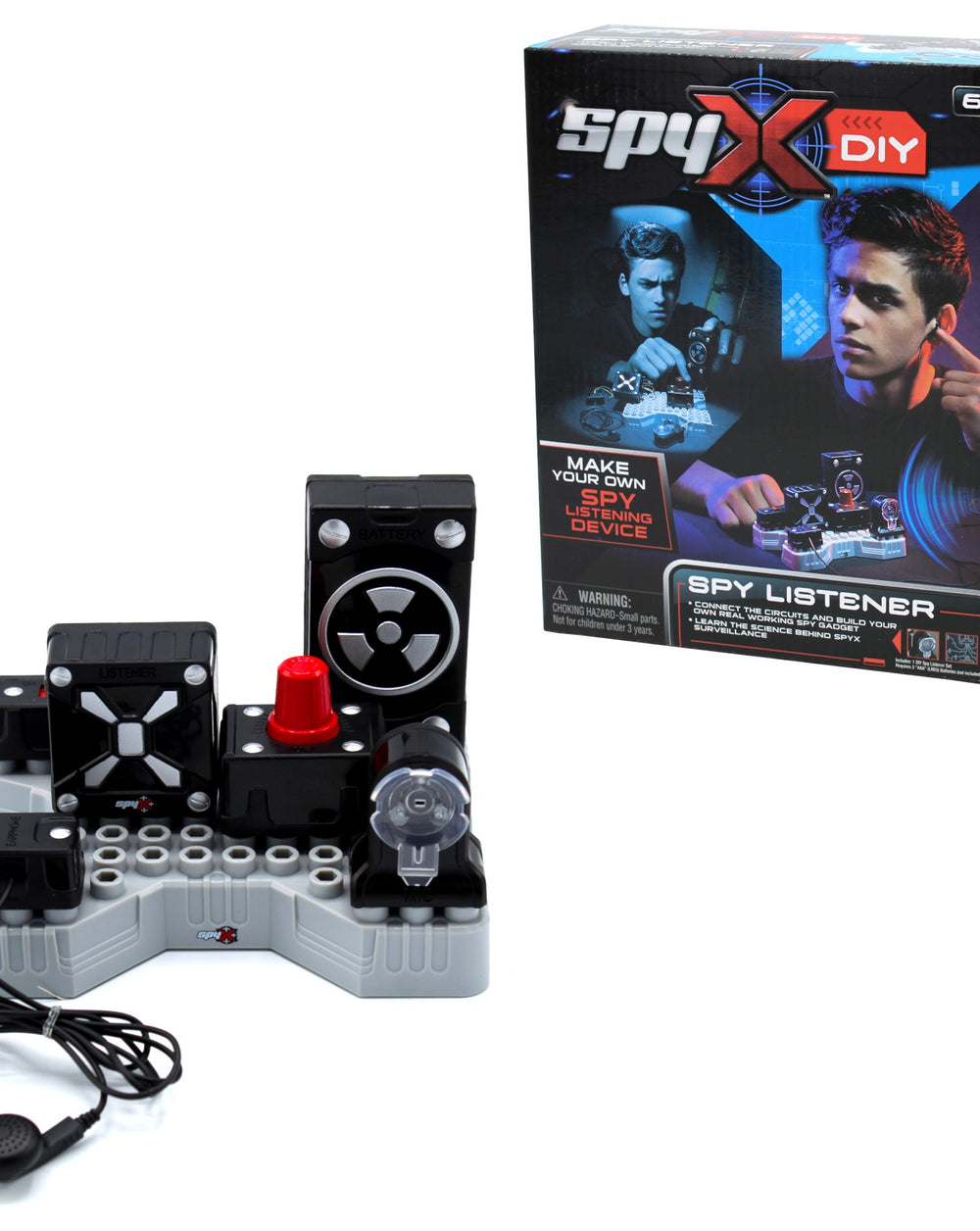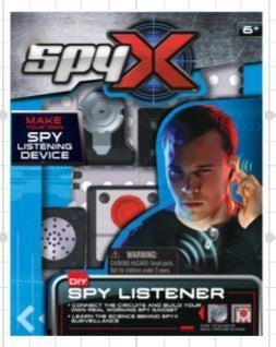 SpyX DIY Listener - Make Your Own Spy Device Connect the circuits and build your own real working spy gadget & Learn the science behind SpyX Surveillance! Build your own spy listening device by following the included instruction & learn the science behind the spy gadgets Plug each sound amplifier modules into the base and connecting the wires, and turn on the power. Place the earbud into your ear, and point the microphone towards the sound source to hear secrets Creative STEM educational kit for kids to learn how to connect the circuits and build a real working spy gadget Promotes critical thinking, fine motor skills, problem solving, and cause/effect training The Includes: Base Spy Listener Kit (a microphones, a battery module, a volume knob, a listen module, an on/off switch, and a earbud) Metal Springs Instruction Sheet.. Specifications Weight: 0.57 lbs; .