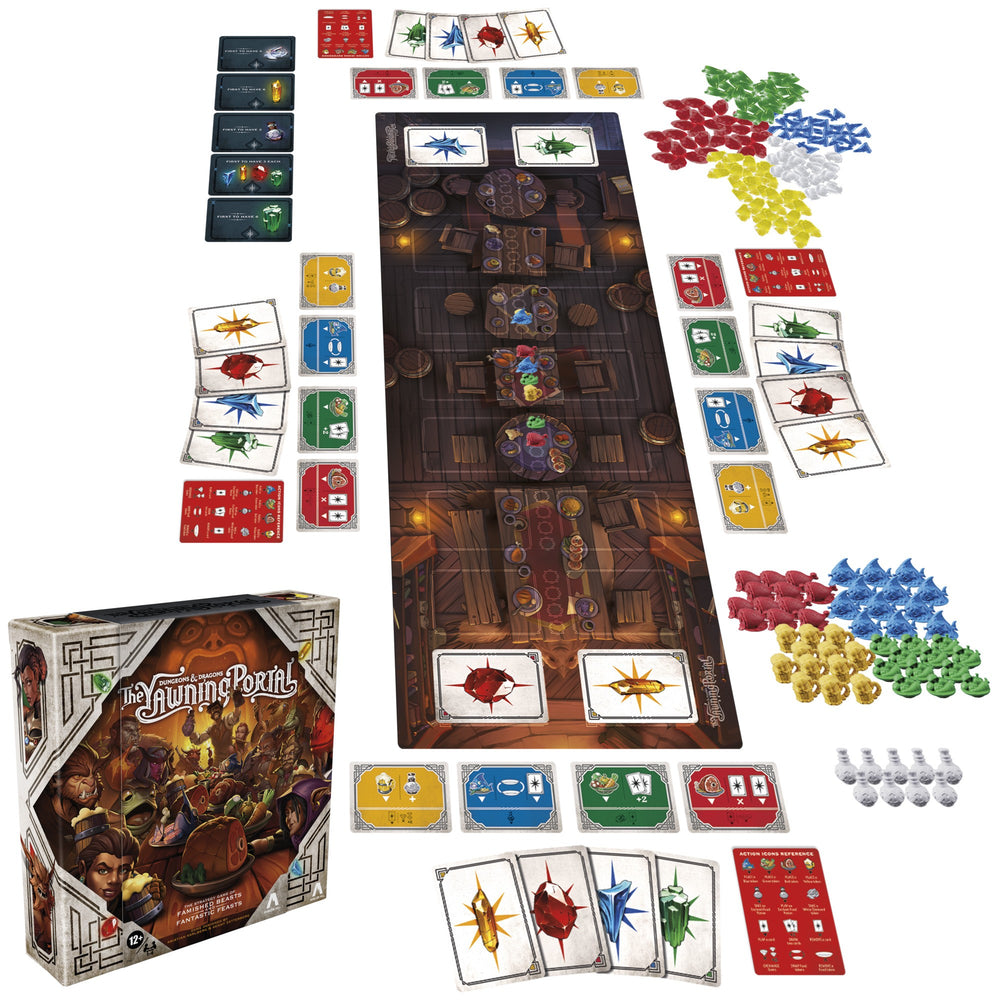Settle in for a rollicking time at the Yawning Portal tavern with the Dungeons and Dragons: The Yawning Portal game—a fresh take on the D&D experience for both D&D experts and newcomers! This iconic inn attracts fascinating adventurers with one thing in common: they’re famished and have unique tastes in food. As part of the tavern s staff feed them by matching up food tokens with the orders pictured on their Hero card. Earn colored gems (and points) for every matching food token or a bonus for completing an order. Collect more points if you’re the first to achieve an Objective challenge or earn an endgame bonus. The player with the most points at the end wins! But there’s a twist—the colored gems that appear most frequently on the board receive the highest point value. So strategize to tip the scoring scale in your favor. This D&D game makes a great gift for D&D fans and beginners alike and it s an exciting game for Family Game Night. Dungeons & Dragons its logo D&D Forgotten Realms and Yawning Portal are trademarks of Wizards of the Coast LLC. Copyright 2022 Wizards. All Rights Reserved. Avalon Hill and Hasbro and all related trademarks and logos are trademarks of Hasbro Inc.•A DIFFERENT WAY TO PLAY D&D: Whether you’re a D&D expert or curious newcomer the Dungeons & Dragons: The Yawning Portal board game is a fresh D&D experience that brings the whole family to the table•STRATEGY GAME OF FAMISHED BEASTS & FANTASTIC FEASTS: Play as a hardworking server at an iconic D&D tavern. Feed the inn s eccentric patrons and collect tips all while staying ahead of the competition•INTRODUCES 68 D&D CHARACTERS: Encounter 68 diverse heroes created for this game! From goblins and wizards to a vegetarian dwarf they each have a unique food order and effect on gameplay•MATCH FOOD ORDERS TO HEROES: Be quick with the quippers and chips! Match food tokens to each Hero card and receive gems as tips. Be strategic to gain the edge over your opponents•FOOD & POTION MINIATURES: Serve 4 types of mini food tokens plus a potion token that convinces patrons to love their food. Play a potion token on a Hero card and earn a Perfect Match bonus•EARN MOST POINTS TO WIN: Collect gems (and points) by seating a hero at the table resolving a Hero card effect or filling food orders. Earn more points through extra challenges and an endgame bonus•PLAY SOLO OR COMPETE AGAINST FRIENDS & FAMILY: Work the tavern alone or compete against the rest of the staff. The modular gameboard is adaptable for 1-4 players•Ages 12 and up •For 1 to 4 players.•.