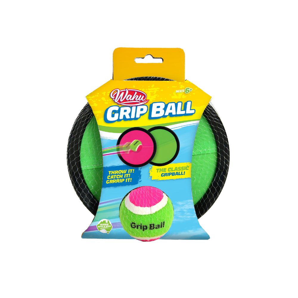 The original grip ball! Throw it, catch it and rrriiippp it! Throw the ball and catch it with a super strong grip mitt. Rip it off and throw it back to your opponent! An exciting catching game for two players! Fun for the whole family. Includes two catchers and a ball with a carry bag.